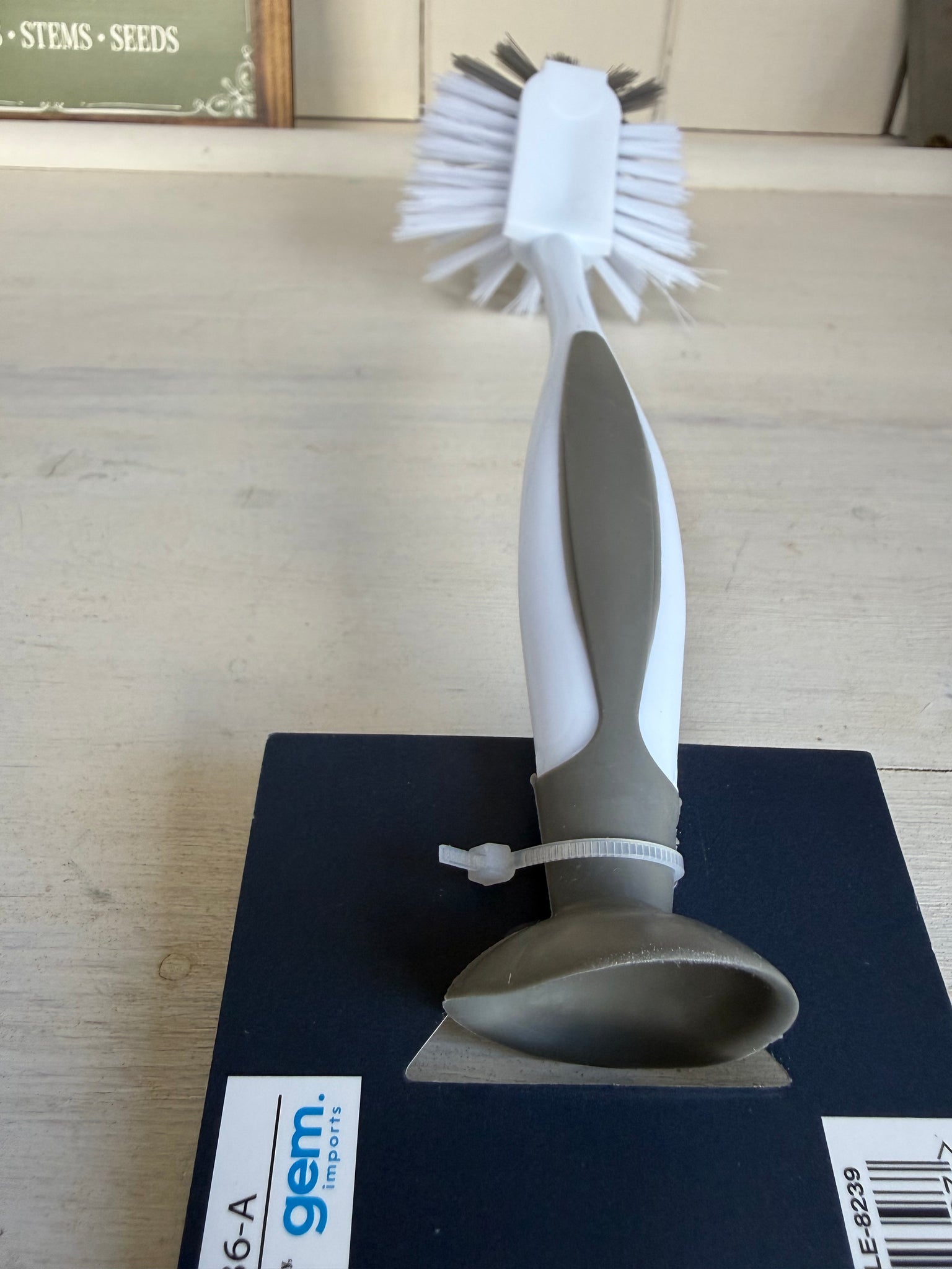 Our heavy-duty suction dish brush keeps washing up simple — and your sink space tidy.